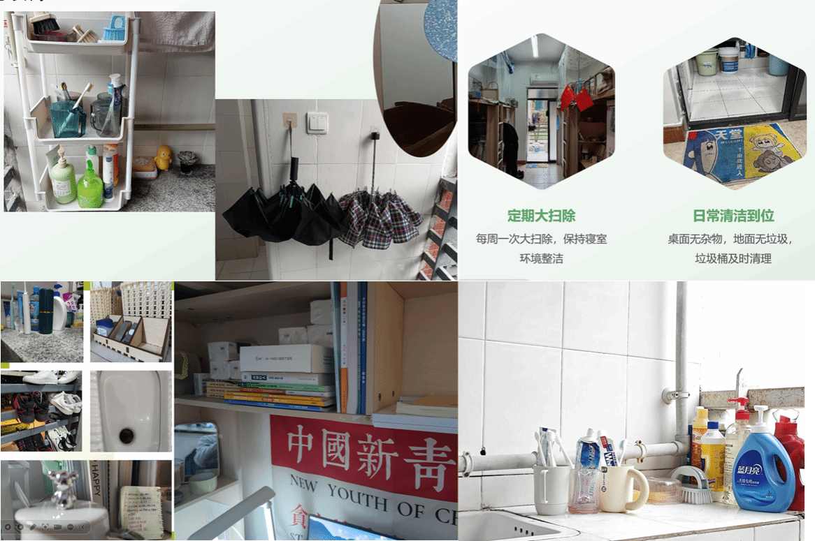 干净整洁的寝室环境,是室友们共同努力和精心维护的结果。他们不仅注重地面的清洁,还特别注意个人物品的摆放和公共区域的整理。每个角落都被细心打理,无论是书桌上的书本,还是衣柜里的衣服,都井然有序,透露出一种生活的节奏感。